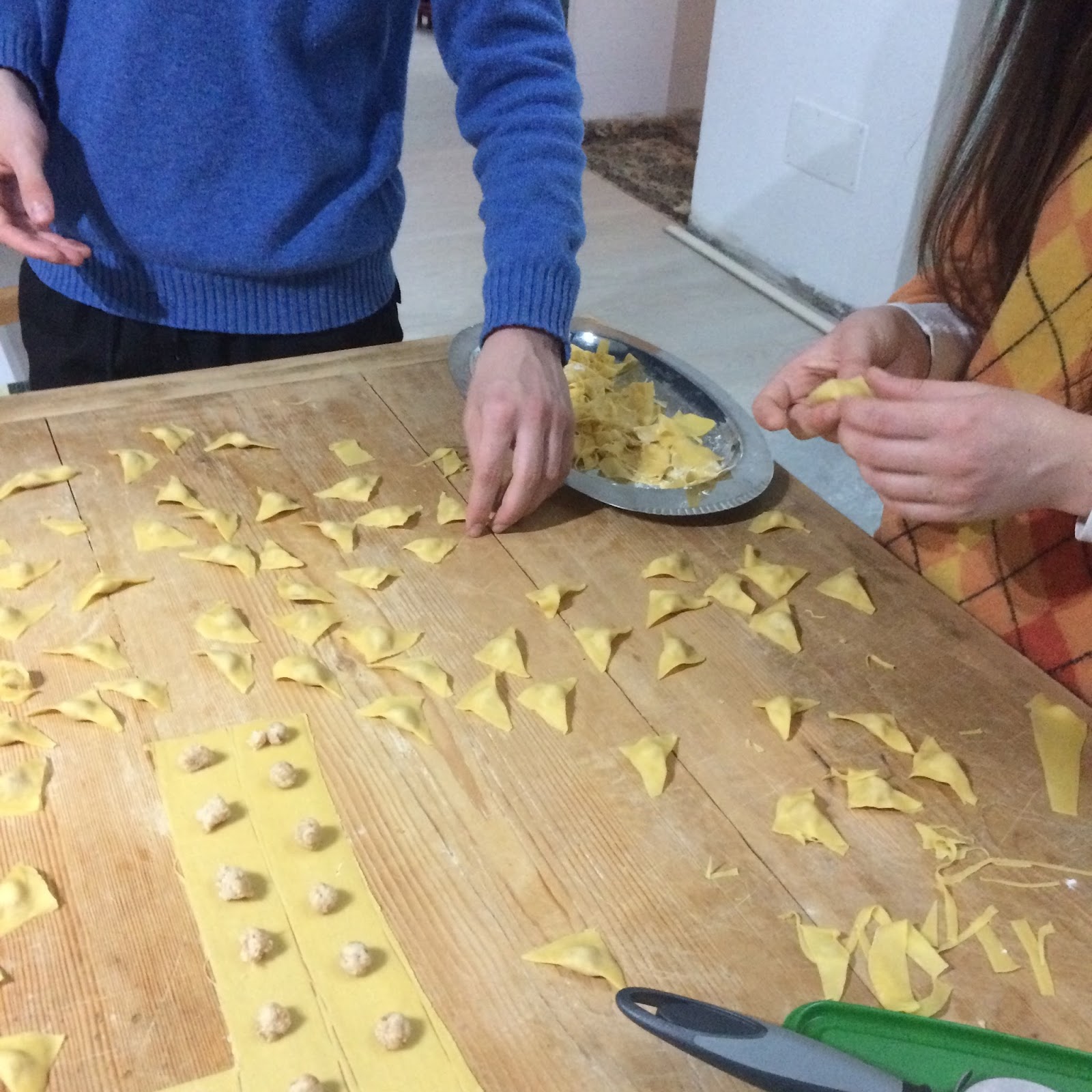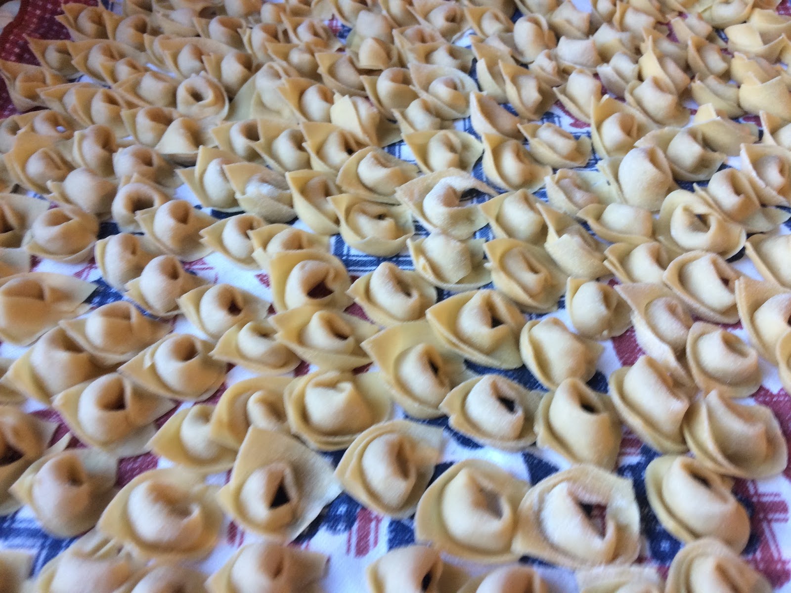 I often make tortelloni, which are bigger and with a vegetarian filling, so it was great to make tiny little tortellini again, hundred of tortellini!